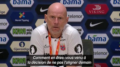哈兰德这场不会上。我理解,他更有可能在下一场对阵瑞士时出场。为什么会做出这样的安排,让他缺席明天这场,把出场时间放到下一场?另外,这个决定现在还有没有改变的可能?